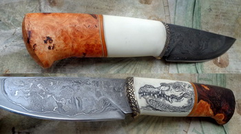 Дръжка – Бивна от мамут, фибър и ясен с изваден фладер.