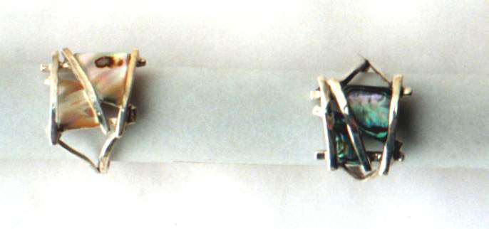 клипс или щифт и пръстен със синьо зелен или розов седеф. Много си ги харесвам