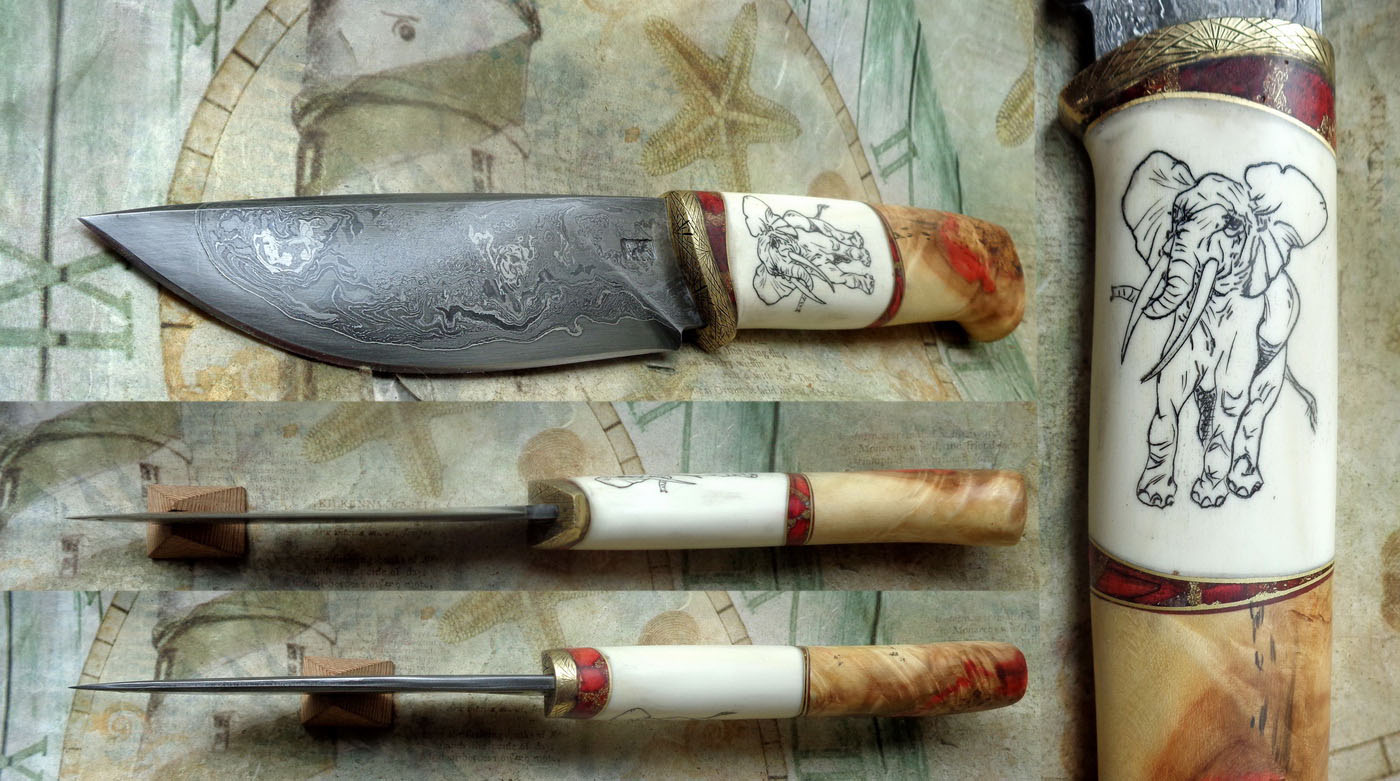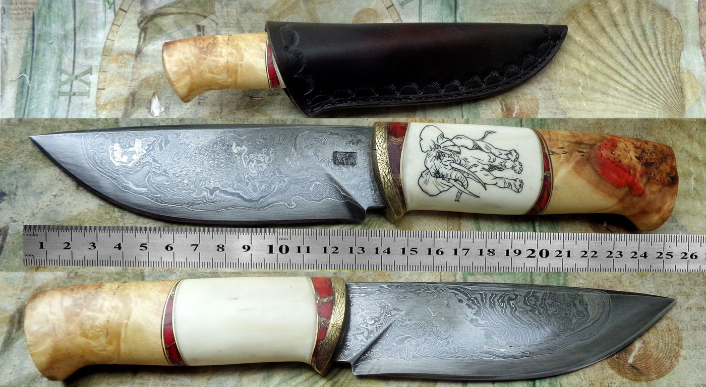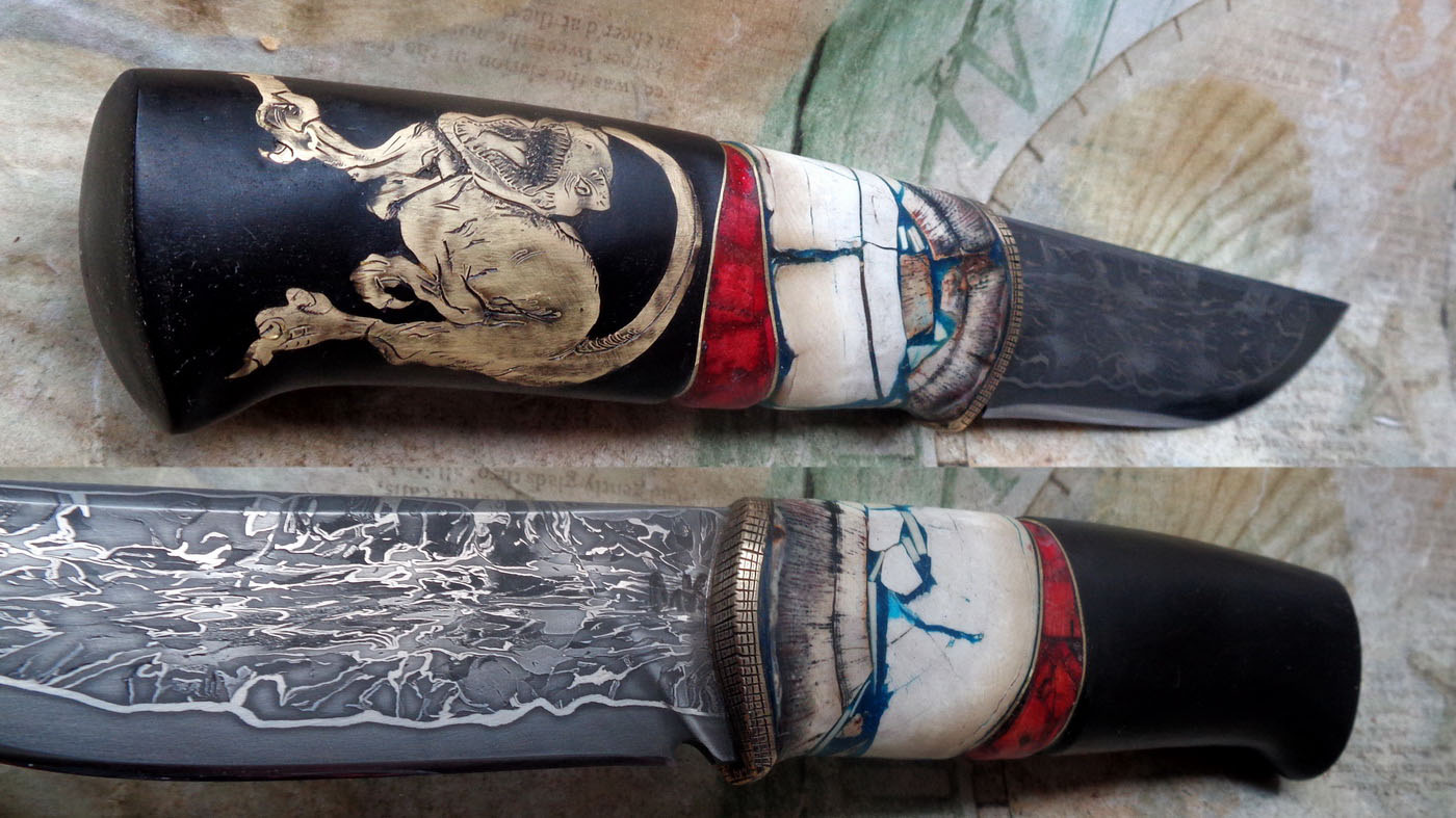 Дръжка – Бивна от мамут и черен габър.