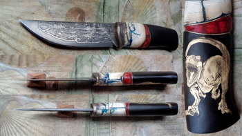 Дръжка – Кост, фибър и орех с малко резбичка.