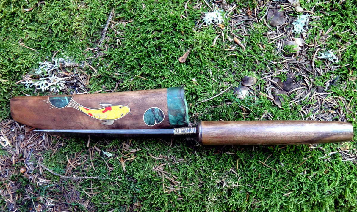 от орех.Гард - бронз. Инкрустации - бронз и мозайка от тюркоаз. Кания