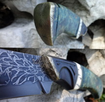 - Ръчно кована фосилна дамаска стомана. Режещ ръб - високо