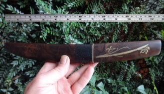 Зоново закалено - 59 - 61 HRC. Дръжка -импрегниран тумор от елша и корен