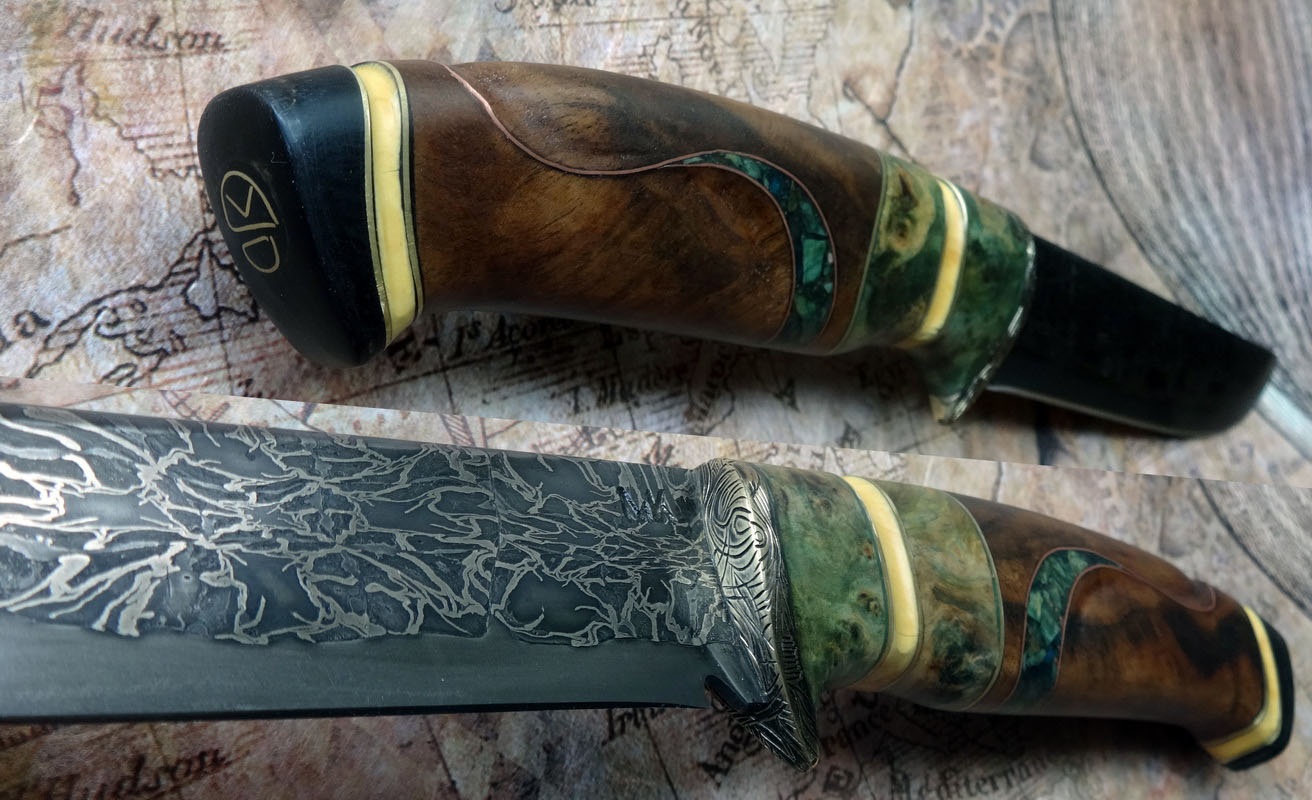 60 - 62 HRC. Дръжка - Наплив от елша, чимшир,