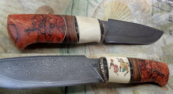 Дръжка – Черен габър, бивна от мамут и корен от орех.
